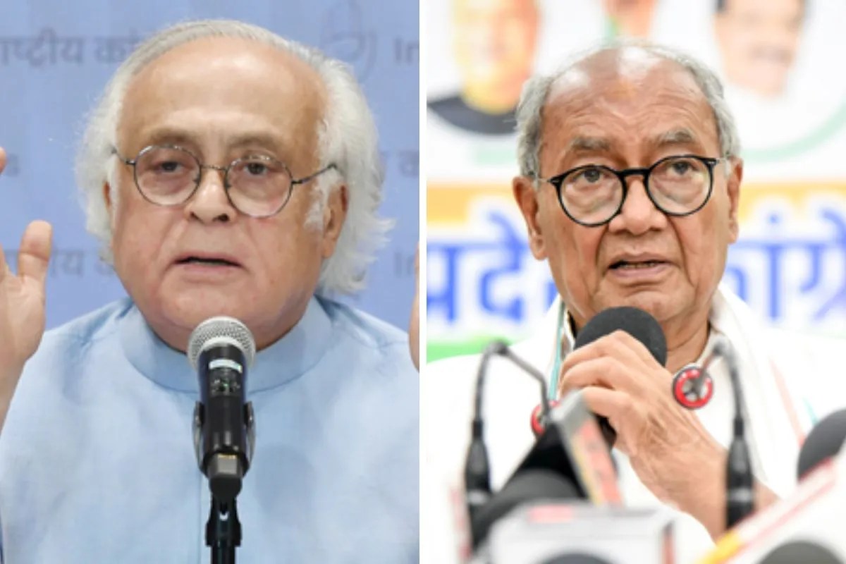 कांग्रेस महासचिव जयराम रमेश और कांग्रेस नेता दिग्विजय सिंह। फोटो- (IANS)