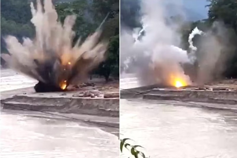 Sikkim Flash Floods 2023 : सिक्किम में इन दिनों प्राकृतिक आपदा का कहर जारी हैै। बीते दिनों बादल फट जाने के कारण तीस्ता नदी उफान पर है। बाढ़ के कारण सिक्किम के रंगपो में तीस्ता नदी में गोला बारूद का एक बड़ा जखीरा बह गया। शुक्रवार को तीसता नदी में जोरदार विस्फोट हुआ। इस जोरदार धमाके के बाद धुएं का घना बादल छा गया। हालांकि, विस्फोट में किसी के घायल होने की सूचना नहीं है। इस घटना का वीडियो सोशल मीडिया पर वायरल हो रहा है। सेना के सूत्रों के अनुसार, तीस्ता नदी में अचानक आई बाढ़ में गोला-बारूद बह गया। तीस्ता नदी में आई बाढ़ में मृतकों की संख्या लगातार बढ़कर अब 56 हो गई है। इसमें 11 सैन्यकर्मी भी शामिल हैं।