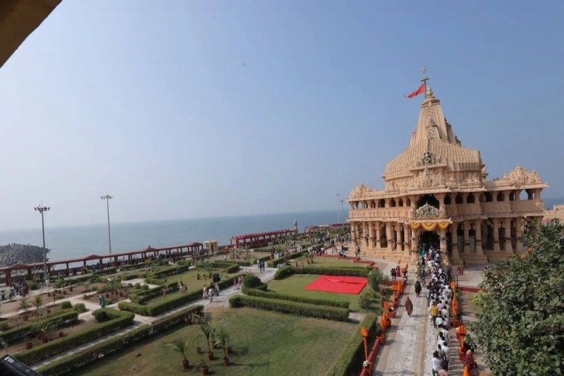 Somnath Temple: सौराष्ट्र की शिवनगरी सोमनाथ स्वाभिमान के सुर, आस्था की अटूट लय और डमरू की ताल के साथ सज-धज कर तैयार है। यहां का हर चौक-चौराहा और हाई-वे तक महादेव के रंग में रंगा है। सतरंगी रोशनी से सराबोर इस शहर में दिवाली सा नजारा पेश आ रहा है। शुक्रवार रात को यहां साधु-संतों ने भव्य शोभायात्रा निकाली। समारोह में भाग लेने के लिए देश भर से सैकड़ों संत सोमनाथ पहुंच गए हैं।