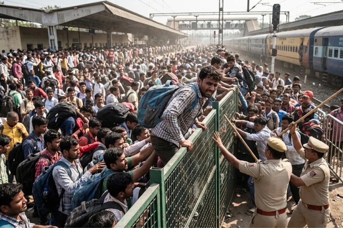 दरअसल, मामला गुजरात के सूरत का है। रविवार को उधना जंक्शन रेलवे स्टेशन पर उस वक्त अफरा-तफरी मच गई, जब उधना-हसनपुर ट्रेन की रवानगी से पहले हजारों की भीड़ अचानक स्टेशन परिसर में उमड़ पड़ी। हालात इतने बिगड़ गए कि भीड़ को काबू में करने के लिए पुलिस को लाठीचार्ज करना पड़ा। धक्का-मुक्की और भगदड़ जैसे हालात में कई यात्री गिर पड़े, जबकि सैकड़ों लोग किसी तरह रेलिंग पार कर प्लेटफॉर्म तक पहुंचने की कोशिश करते नजर आए।