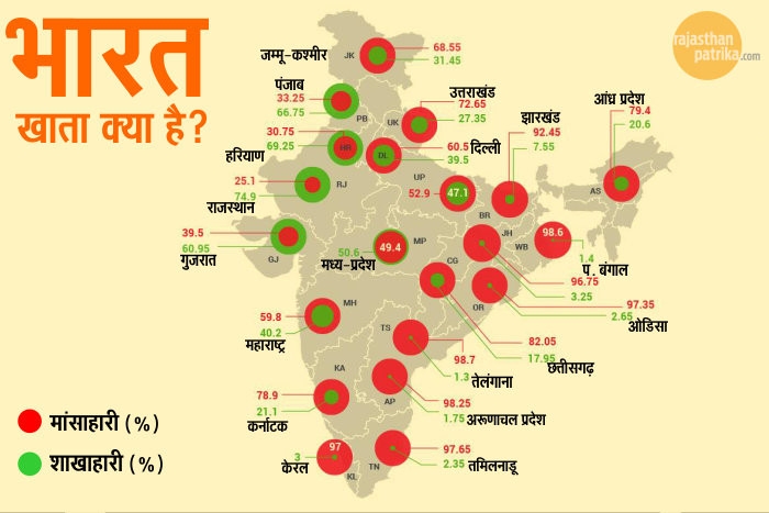 सर्वे में हुआ खुलासा- भारत अब मांसाहार प्रधान देश! शाकाहार में राजस्थान नम्बर वन