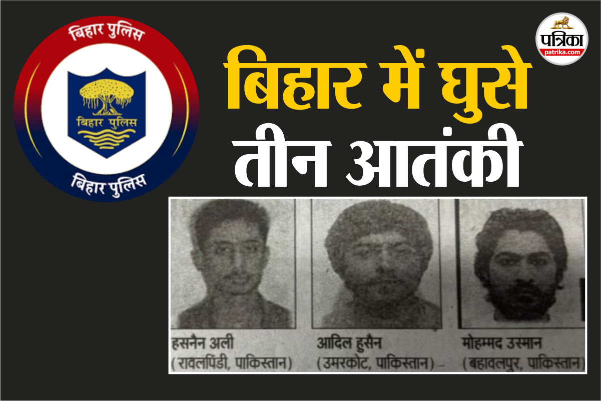 आतंकियों की पहचान रावलपिंडी निवासी हसनैन अली, उमरकोट निवासी आदिल हुसैन और बहावलपुर निवासी मोहम्मद उस्मान के रूप में हुई है। तीनों आतंकी अगस्त के दूसरे सप्ताह में काठमांडू (नेपाल) पहुंचे थे। वहां से बीते सप्ताह बिहार में दाखिल हुए।