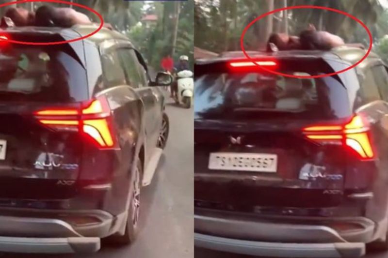 गोवा में समुद्री नजारा देखने के लिए सैलानियों की हमेशा भीड़ रहती है और ये क्रिसमस और न्यू ईयर के दौरान काफी हद तक बढ़ जाती है। न्यू ईयर 2024 से ठीक पहले गोवा से एक खतरनाक स्टंट का वीडियो सामने आया है। जिसमें साफ तौर पर देखा जा सकता है कि एक शख्स अपनी कार के रूफ पर अपने बच्चों को सुला देता है और कार को सड़क पर दौड़ाना शुरू कर देता है। शख्स का यह कारनामा वहां मौजूद किसी ने कैमरे कैद कर लिया और सोशल मीडिया पोस्ट कर दिया। जिसके बाद यह वीडियो वायरल हो रहा है।