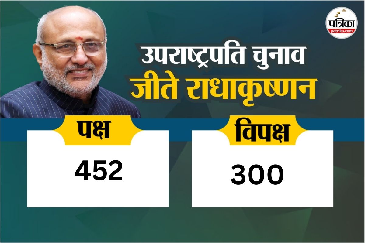 Vice President Election Result: उपराष्ट्रपति चुनाव में एनडीए प्रत्याशी सीपी राधाकृष्णन ने जीत हासिल की है। सीपी राधाकृष्णन को 452 वोट मिले वहीं इंडिया ब्लॉक के प्रत्याशी सुदर्शन रेड्डी को 300 वोट मिले। जगदीप धनखड़ के इस्तीफा देने के बाद मंगलवार को उपराष्ट्रपति पद के लिए चुनाव हुए। मतदान सुबह 10 बजे से शाम 5 बजे तक हुआ। मतदान के बाद कांग्रेस नेता जयराम रमेश ने एक्स पर पोस्ट करते हुए लिखा- उपराष्ट्रपति चुनाव के लिए मतदान समाप्त हो गया है। विपक्ष एकजुट है। उसके सभी 315 सांसद मतदान के लिए उपस्थित हुए हैं। यह अभूतपूर्व 100% मतदान है।