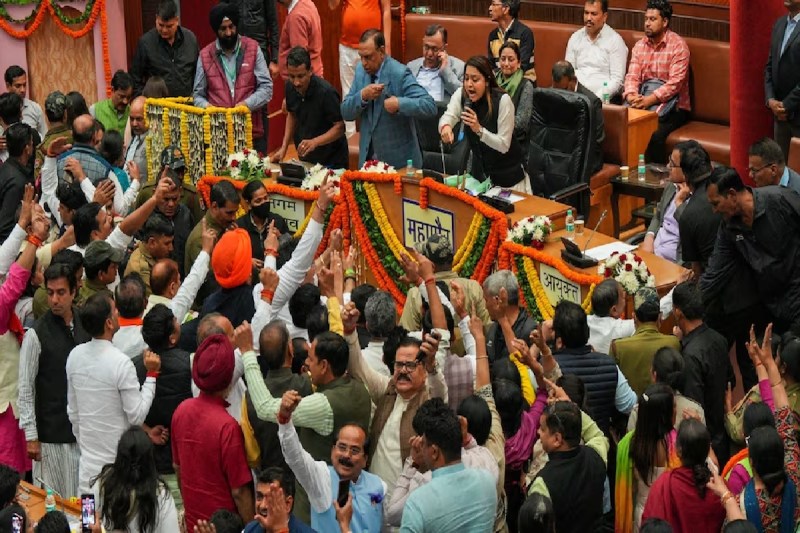 Upror in MCD Sadan During Standing Committee Election: बुधवार को दिल्ली नगर निगम के मेयर चुनाव के लिए एमसीडी सदन में बुलाई गई पार्षदों की बैठक में जमकर हंगामा हुआ। मेयर और डिप्टी मेयर के चुनाव के बाद स्टैंडिग कमेटी चुनाव के दोनों आम आदमी पार्टी और भारतीय जनता पार्टी के पार्षदों में जमकर झड़प हुई। इस दौरान एमसीडी हाउस में आप और भाजपा के पार्षदों को एक-दूसरे पर पानी की बोतलें फेंकते देखा गया, जिसके कारण कई बार हंगामा हुआ, जिससे स्थायी समिति के छह सदस्यों के चुनाव में देरी हुई। इससे पहले दिन में महापौर और उप महापौर के पद पर आप के उम्मीदवारों के चुने जाने के बाद सदन को एक घंटे (शाम 4:20 बजे से शाम 5:20 बजे तक) के लिए स्थगित कर दिया गया था। हालांकि, जब कार्यवाही शुरू हुई, तो भाजपा पार्षदों ने मतदान केंद्र के अंदर मोबाइल फोन की अनुमति देने पर आपत्ति जताई। गुरुवार सुबह सदन की कार्यवाही शुरू होने पर फिर से हंगामा हुआ। इस कारण सदन की कार्यवाही को कल तक के लिए स्थगित कर दिया गया है।