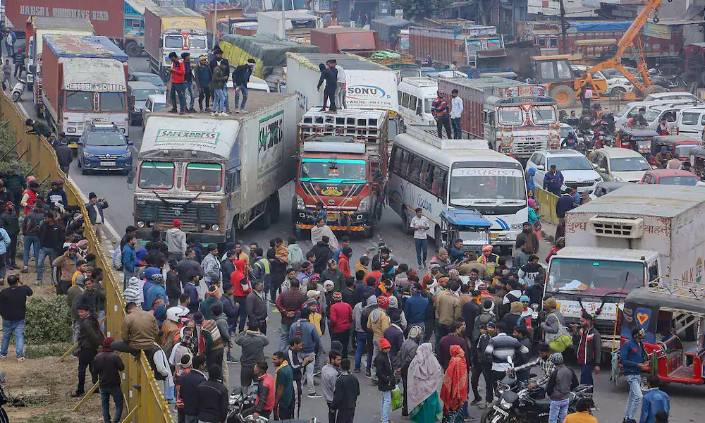 Protest against hit and run law : केंद्र सरकार ने हाल ही में भारतीय न्याय संहित को लेकर कड़े नियम बनाए है। बीते दिनों से 'हिंट एंड रन' को लेकर देशभर में जबरदस्त विरोध प्रदर्शन किया जा रहा था। इस नियम को लेकर ट्रक ड्राइवर्स में काफी आक्रोश है। ड्राइवर सड़क पर ट्रक छोड़कर विरोध प्रदर्शन कर रहे थे। बताया जा रहा है कि करीब 25 लाख ट्रकों के पहिए थम गए थे। राजस्थान, यूपी, एपी, हरियाणा, जम्मू-कश्मीर, महाराष्ट्र, गुजरात, छत्तीसगढ़, पंजाब और उत्तराखंड में हालात बिगड़ने की स्थिति आ गए थे। कई राज्यों में प्रदर्शन की वजह से कुछ स्थानों पर ईंधन की कमी की आशंका पैदा हो गई। आइये जानते है हिट एंड रन कानून के बारे जिसका देशभर में ड्राइवर विरोध कर रहे है।