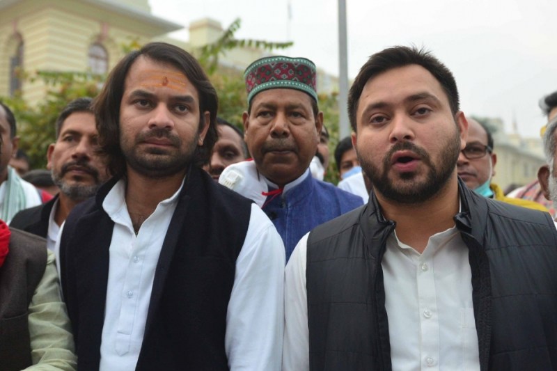 तेजस्वी यादव और तेज प्रताप यादव एक चुनावी कार्यक्रम में। File Pic IANS