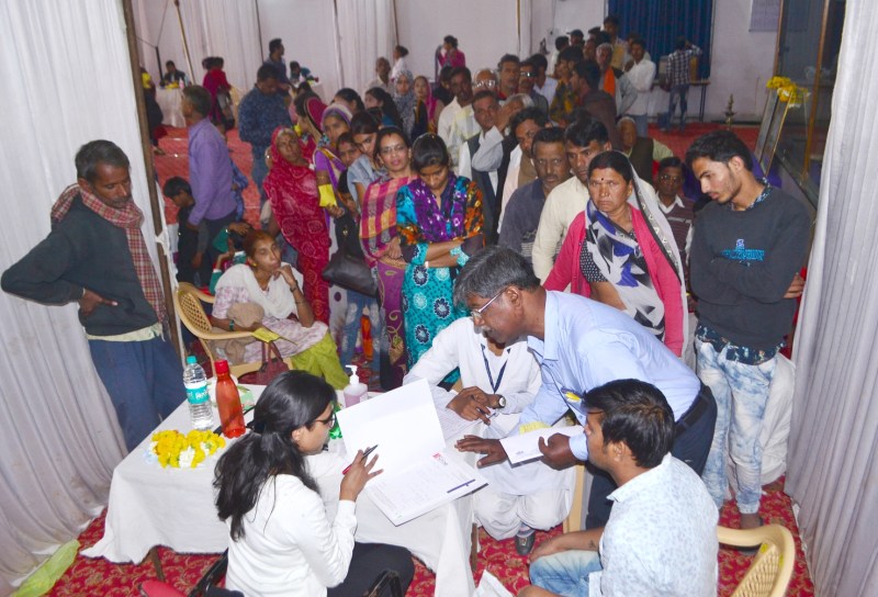 नि:शुल्क स्वास्थ्य परीक्षण में उपचार कराने पहुंचे मरीज।