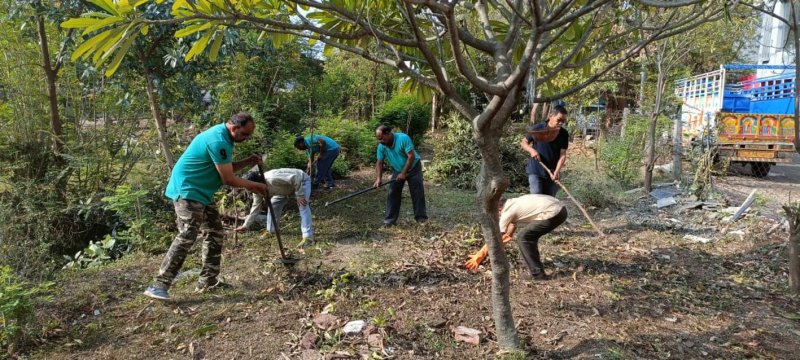 श्रमदान करते हुए पर्यावरण मित्र।