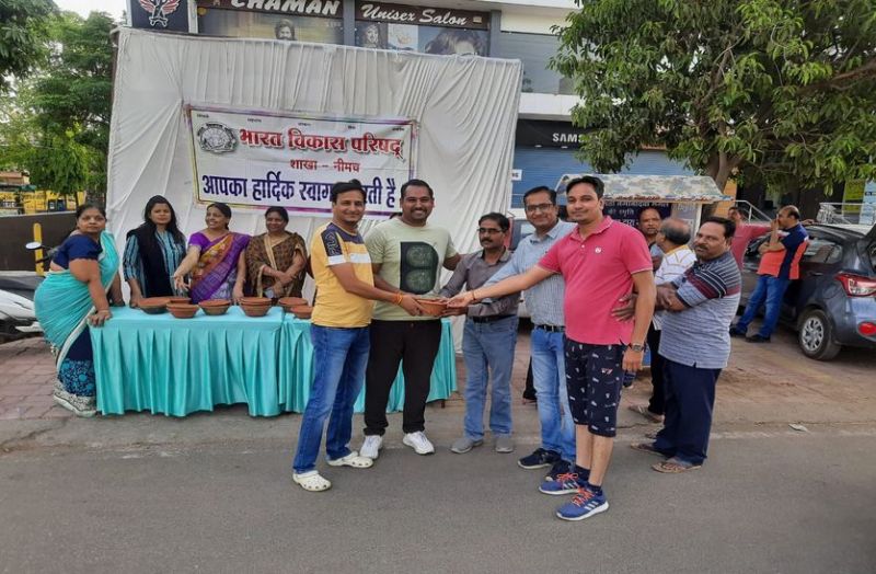 नीमच. सेवा संस्कार में अग्रणी भारत विकास परिषद द्वारा प्रतिवर्षानुसार इस वर्ष भी भीषण गर्मी को देखते हुए पक्षियों के लिए दाने-पानी और जल की व्यवस्था के लिए करीब 200 जलपात्र नि:शुल्क वितरित किए।