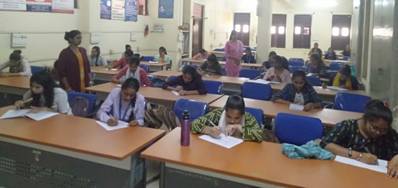 कन्या कॉलेज में आयोजित प्रतियोगिता में भाग लेतीं छात्राएं।