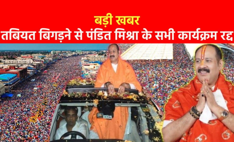 Katha of Pandit Mishra canceled due to deteriorating health- विख्यात कथावाचक पंडित प्रदीप मिश्रा की तबियत बिगड़ गई है। उन्होंने खुद इस बात की जानकारी दी। इतना ही नहीं, पंडित प्रदीप मिश्रा के आगामी सभी कार्यक्रम भी निरस्त कर दिए गए हैं।