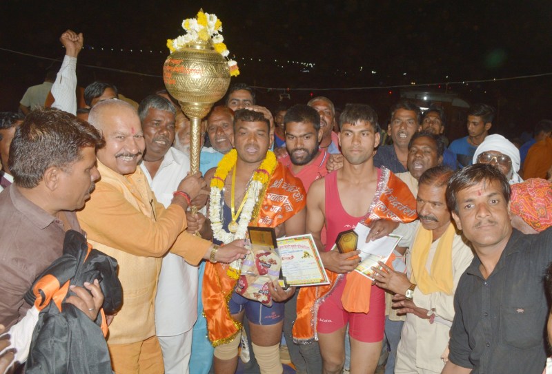 नीमच. होली के उपलक्ष्य में चंद्रवंशी ग्वाला समाज द्वारा आयोजित कुश्ती प्रतियोगिता का समापन सोमवार देर रात को हुआ। प्रतियोगिता में राजेश कैथवास बबला गंगादीन व्यायाम शाला ने गंगादीन के ही कुंदन रियार को कड़े मुकाबले में पराजित कर जिला केसरी का खिताब अपने नाम किया।