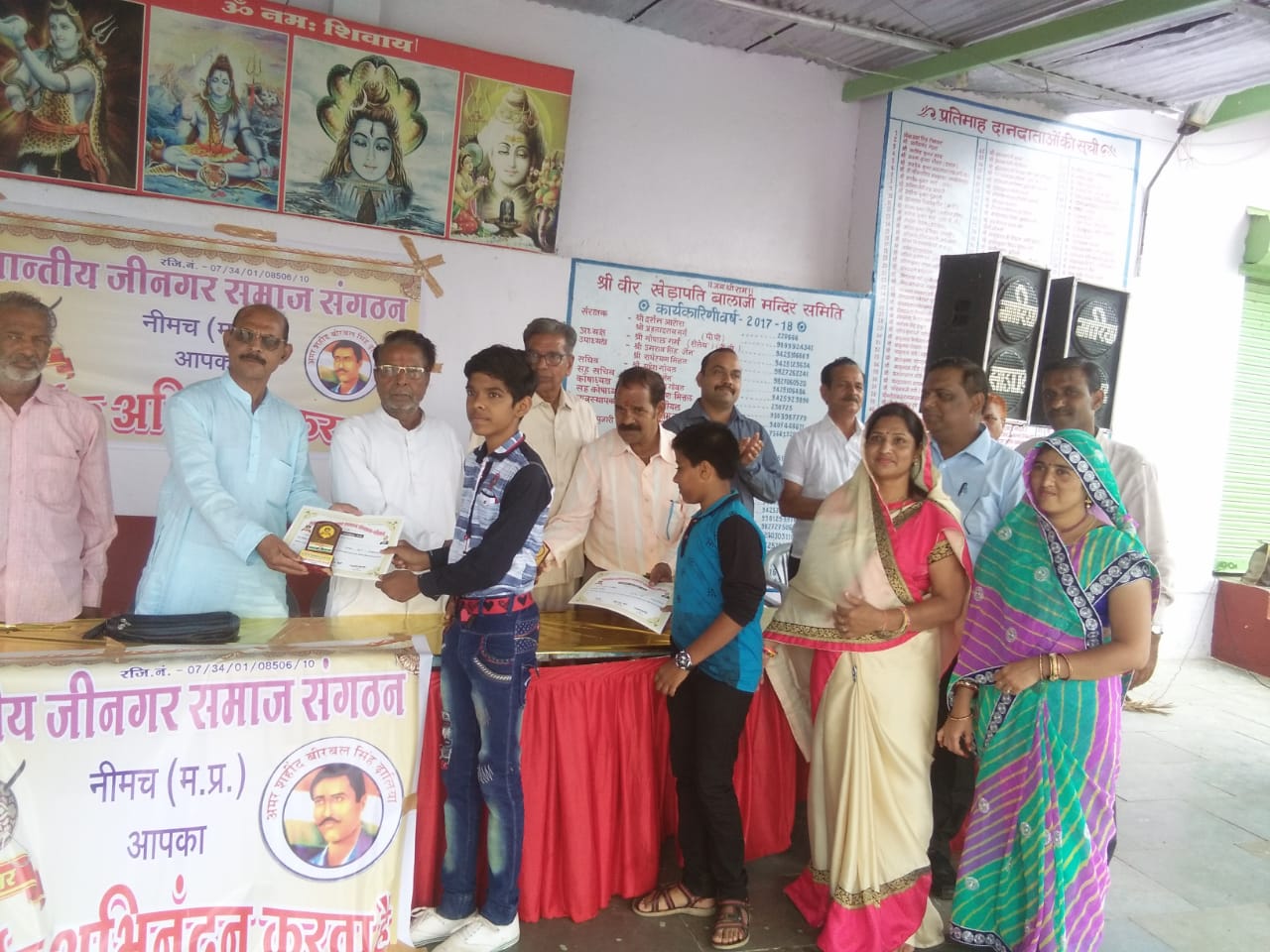 प्रांतीय जीनगर समाज संगठन नीमच द्वारा वीर खेड़ापति बालाजी मंदिर परिसर में प्रतिभा सम्मान एवं समाज के स्नेह मिलन समारोह का आयोजन किया गया था। कार्यक्रम में समाज के वरिष्ठजनों ने कहा कि समाज की प्रतिभाओं को निखारने के लिए उन्हें प्रोत्साहित करना जरूरी है। समाज की प्रतिभाओं को सम्मानित करने नीमच में जीनगर समाज अच्छा आयोजन किया है। ऐसे आयोजन प्रतिभाओं को निखारने में मिल पत्थर साबित होते हैं। उन्होंने कहा कि नीमच में जीनगर समाज के परिवार ्रसीमित है। इसके बाद भी इस तरह का कार्यक्रम होना बड़ी बात है। कार्यक्रम को समाज अध्यक्ष मनोहरलाल सोनगरा, वरिष्ठ फकीरचंद्र राठौर, टीएम चौहान, आयकर अधिकारी नीमच रघुवीरप्रसाद चौहान आदि ने संबोधित किया। कार्यक्रम में पूर्व अध्यक्ष रमेशचंद्र सिसोदिया, रेलवे अभियंता प्रेमराज चौहान, मोतीलाल सांखला, प्यारेलाल सोनगरा मंचासीन थे।