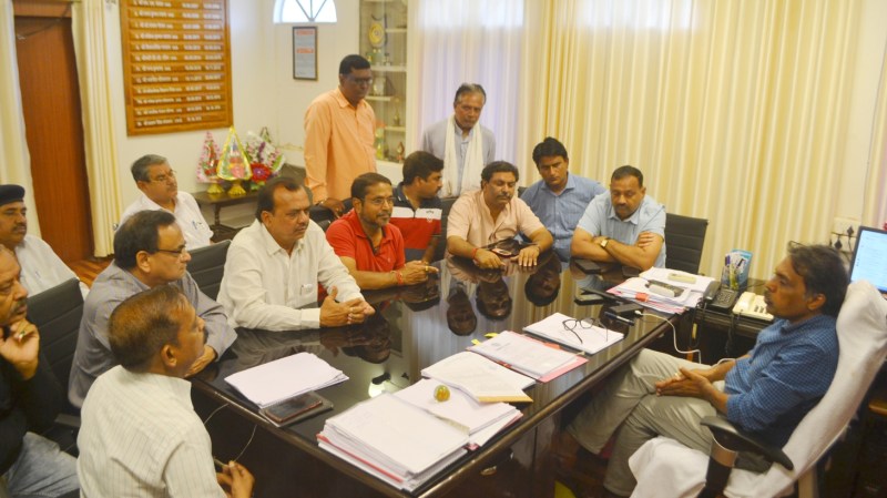 कलेक्टोरेट में कलेक्टर से मेडिकल कॉलेज के संबंध में चर्चा करते हुए जनप्रतिनिधि व अन्य।