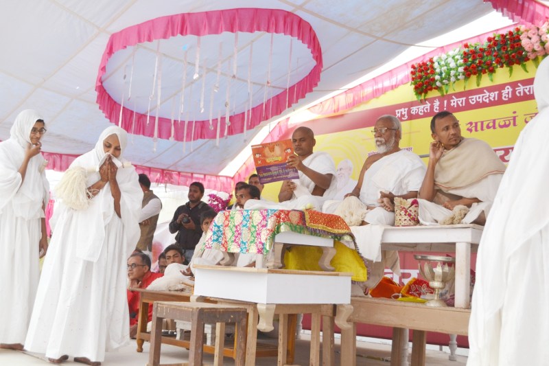 दीक्षा उत्सव में सकल नवकार मंत्र अराधक के साथ सभी समाज वर्गों के साथ पूरा शहर दीक्षार्थी बहन की अनुमोदना के लिए उमड़ा। रविवार सुबह 9 बजे आचार्य हेमचन्द्रसागर सूरी महाराज, वीतरागचन्द्र सागर महाराज, साध्वी अमीपूर्णाश्रीजी की पावन निश्रा में ओम रिम नमो चारित्रस.., नवकार मंत्र का उच्चारण, मंगलविधि से जयति को आत्म शुद्धि की क्रिया करवाई गई। तब जयति ने मम मुंडन करो- मम इचकारी भगवान बजाय कारी मा मा मुंडा वेशम सम मामा पावात् ही... के उच्चारण के साथ है गुरुदेव मेरा मुंडन करो मेरा गुरु के प्रति समर्पण स्वीकारो। मुझे साधु का वेश प्रदान करो की प्रार्थना की। गुरु चरणों में आने के लिए आशीर्वाद मांगा। धर्मसभा का शुभारंभ सामूहिक चेत्यवन्दन से हुआ। आचार्यश्री की निश्रा में जयती ने तीन बार प्रदक्षिणा की और प्रभु पूजा कर गुरु आशीर्वाद मांगा, तब आचार्यश्री ने आज्ञा देकर सांसारिक नाम जयति को परिवर्तित कर नया नाम संस्कार कर 'जिर्णांगपूर्णाश्रीजी' महाराज नृतन नाम की उद्घोषणा की। करम भंते के बाद जयति अब साधु परिवेश में रहेंगी। रात्रि भोज का त्याग रहेगा। सामायिक प्रतिक्रमण धर्म अध्यात्म पर तथा आत्मा का कल्याण ही उसका प्रमुख लक्ष्य रहेगा।