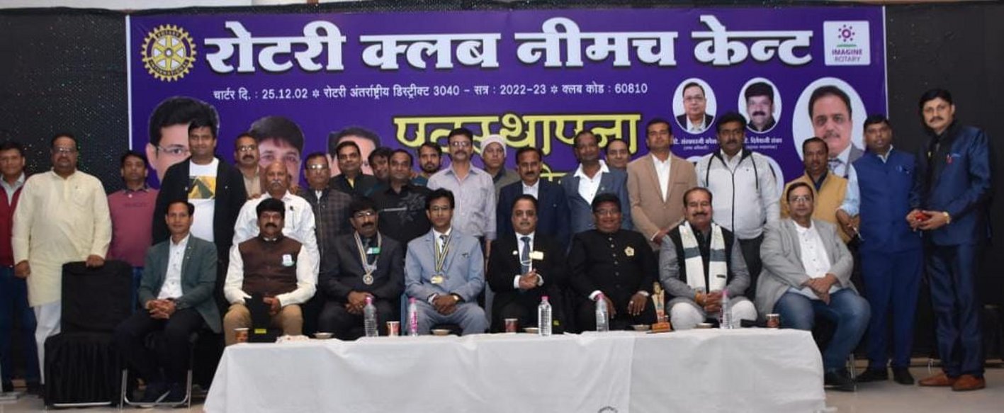 रोटरी क्लब नीमच कैंट के पदस्थापना समारोह में उपस्थित नवीन कार्यकारिणी और नवीन सदस्य।