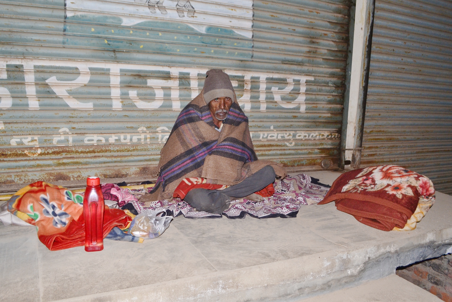 वृद्धाश्रम से बाहर निकालने के बाद इस तरह ठंड में ठिठुरता बुजुर्ग।