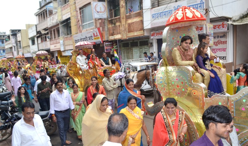 चातुर्मास के दौरान साध्वी मुक्तिप्रिया, मृदुप्रिया, हर्षप्रिया, ऋजुप्रिया, जिन प्रिया आदि ठाणा सात के सानिध्य में रविवार को शत्रुंजय तप की तपस्या करने वाले जैन समाजजनों का भव्य वरघोड़ा निकला, वरघोड़े में प्रभु रथ, मंगल कलश शिरोधार्य किए श्राविकाएं, घोड़े पर सवार नन्नें मुन्ने बच्चे, दो युवा समाजजन स्वर्ण ध्वजा हाथ में लिए चलायमान थे, वहीं करीब १३ शाही बग्गियों में करीब 51 तपस्वियों का वरघोड़ा कतारबद्ध तरीके से निकला । इस दौरान नपा की रेलीगाड़ी में नन्नें मुन्नें बच्चों ने नगर भ्रमण का आनंद लिया।