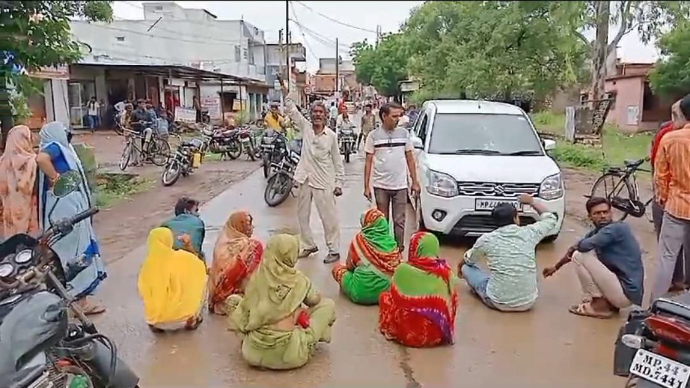 ग्राम पंचायत धनेरियाकला कार्यालय के समाने चक्काजाम करते कॉलोनीवासी।