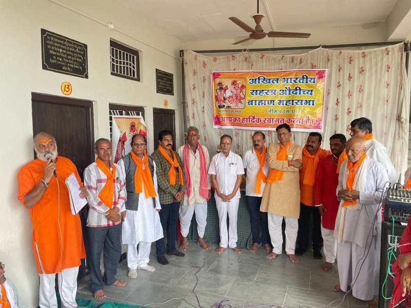भादवामाता में आयोजित सम्मेलन का शुभारंभ अध्यक्ष राजेंद्र व्यास, श्याम सुंदर ठक्कर, अशोक मेहता, जगदीशचंद्र जोशी, बद्रीलाल पंड्या, परशुराम शर्मा, भंवरलाल जोशी, आत्माराम जोशी आदि वरिष्ठजनों ने समाज के आराध्य भगवान गोविंद माधव एवं मां भादवामाता का पूजन अर्चन कर किया। महामाया भादवामाता में समाज की धर्मशाला बने इसके लिए सर्वानुमति से ट्रस्ट का गठन करने को लेकर सहमति बनी। ट्रस्टी के लिए 51 हजार रुपए की राशि निर्धारित की गई। इसमें समाज के दिनेश मेहता नीमच (सावन) एक लाख ११ हजार, हरीश सावन वालों ने एक लाख, फतेश शर्मा सैलाना एक लाख, बद्रीलाल पंड्या सावन, राजेंद्र व्यास, चंद्रशेखर शर्मा, अशोक मेहता, जगदीशचंद्र जोशी डिकेन और जगदीशचंद्र व्यास पिपलिया मंडी ने ५१-51 हजार रुपए की स्वीकृति देकर ट्रस्ट के सदस्य बने। बैठक में समाज के नीमच जिले के अतिरिक्त प्रतापगढ़, छोटी सादड़ी, गागरोल, कारुण्डा, पलसोड़ा, जमुनियाकला, डीकेन, लासुर, मानसा, सावन, ढाबा, बामोरा आदि स्थानों से संबंधित समाजजनों ने सम्मेलन में शिरकत की। सम्मेलन में विशेष रूप से जावरा से पधारे श्याम सुंदर ठक्कर एवं गिरिजा ठाकुर का मार्गदर्शन मिला। सम्मेलन को सफल बनाने में सभी समाजजनों के साथ हरीश पंड्या, रघुनंदन व्यास, परशुराम पंड्या, प्रहलाद भट्ट, गोविंद भारद्वाज सावन, सुनील यजुर्वेदी मनासा, पवन रावल मनासा, निलेश रावल, नूतन द्विवेदी आदि समाजजनों ने अपने विचार व्यक्त किए। संचालन फतेश शर्मा एवं दीपशिखा रावल ने संयुक्त रूप से किया गया। आभार निवर्तमान अध्यक्ष राजेंद्र व्यास ने माना।