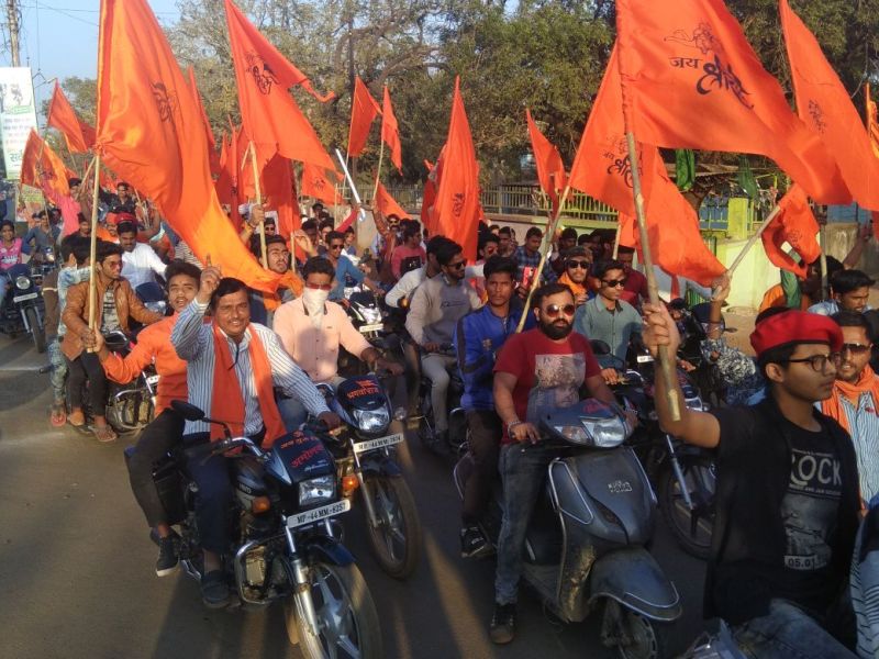 हिन्दू उत्सव समिति द्वारा शनिवार को नगर के प्रमुख मार्गों से निकाली गई वाहन रैली।