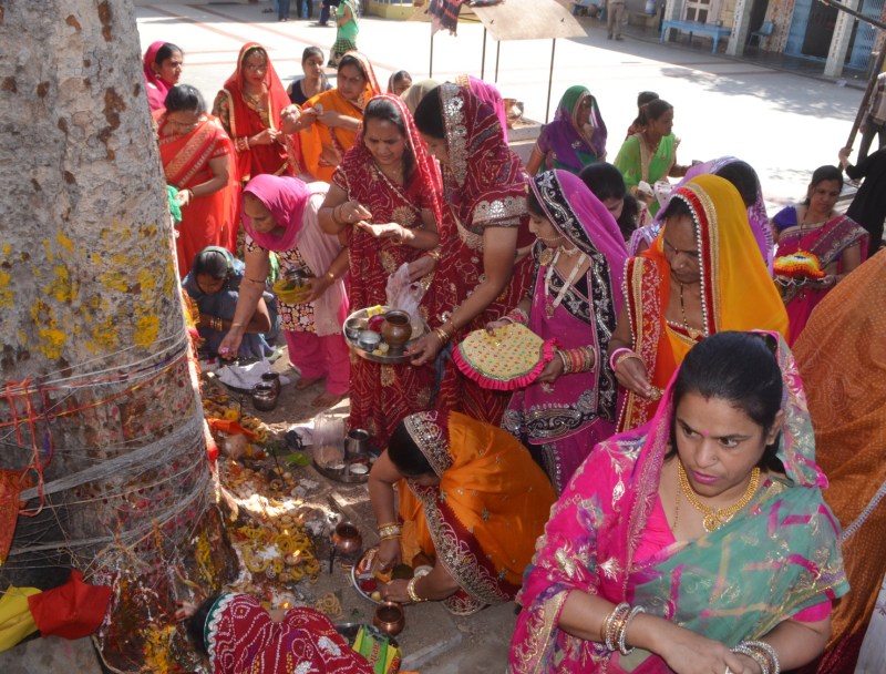 कच्चे सूत को लपेटकर मांगा अखंड सौभाग्य