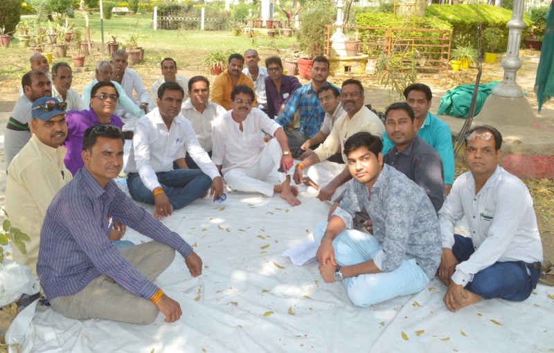 गांधी वाटिका में बैठक में चर्चा करते हुए।