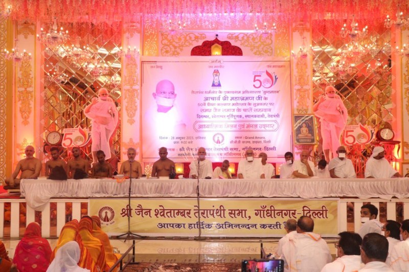 नई दिल्ली। जैन संत आचार्य महाश्रमण म.सा. का 50वां दीक्षा दिवस रविवार को श्रद्धा व उल्लास के साथ मनाया गया। तेरापंथ जैन सभा की ओर से दिल्ली के सीबीडी ग्राउंड में आयोजित समारोह में दिल्ली विधानसभा के अध्यक्ष रामनिवास गोयल जैन तथा धर्म के सभी संप्रदायों के प्रमुख संत मौजूद रहे।