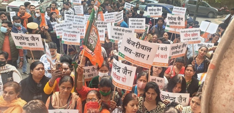 दलित बच्ची के साथ छेड़खानी की घटना पर भाजपा ने सत्येंद्र जैन के आवास पर दिया धरना