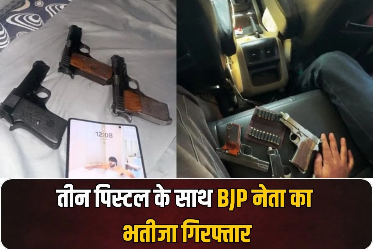 Ghaziabad News: दिल्ली से सटे गाजियाबाद जिले में क्राइम ब्रांच की टीम ने चेकिंग के दौरान भाजपा नेता के भतीजे को गिरफ्तार किया है। आरोपी के पास से एक लग्जरी गाड़ी और तीन पिस्टल बरामद की गई हैं। बताया जा रहा है कि पिस्टल के साथ गिरफ्तार आरोपी भाजपा का कार्यकारिणी सदस्य भी है। फिलहाल इस मामले में पुलिस जांच-पड़ताल कर रही है।