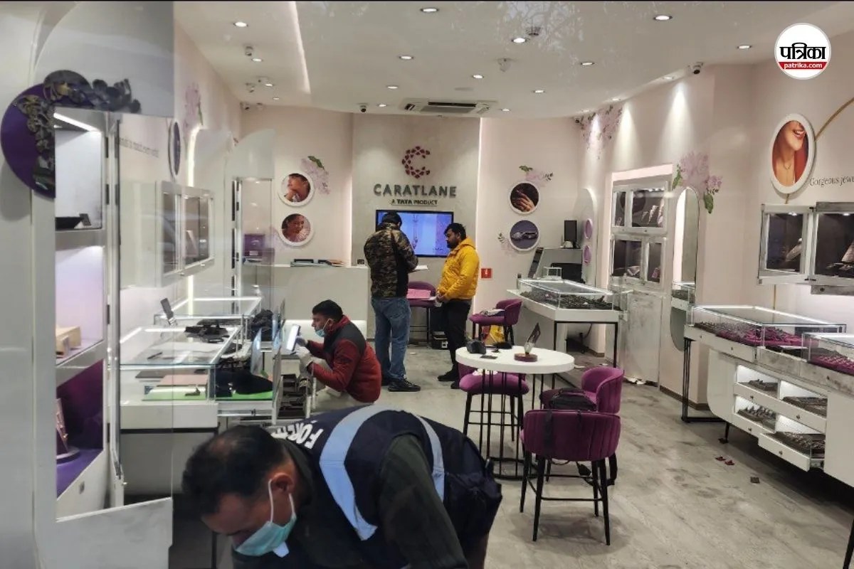 शोरूम के अंदर फिंगर प्रिंट तलाशती एक्सपर्ट की टीम