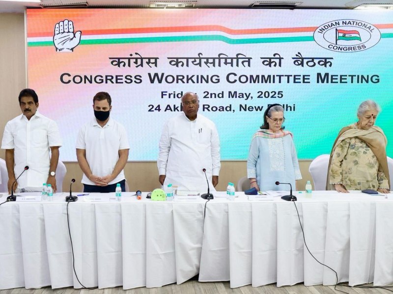 कांग्रेस अध्यक्ष मल्लिकार्जुन खरगे की अध्यक्षता में कांग्रेस कार्यसमिति (सीडब्ल्यूसी) की बैठक हुई। इसमें पहलगाम आतंकी हमले को लेकर पाकिस्तान को माकूल जवाब देने के साथ जाति जगनगणना के लिए आवश्यक बजट और समयबद्ध तरीके से तेलंगाना मॉडल अपनाने की मांग केन्द्र सरकार से की गई। बैठक की शुरुआत में खरगे ने कहा कि आतंकवाद के खि़लाफ़ लड़ाई में सरकार को हम सभी संभव सहयोग दे रहे हैं। पहलगाम की घटना के कई दिन बाद भी सरकार की तरफ़ से कोई स्पष्ट रणनीति सामने नहीं आई है। देश की एकता, अखंडता और खुशहाली की राह में जो भी चुनौती बनकर आएगा, उसके खिलाफ़ हम एक होकर सख्ती से निपटेंगे। बैठक में कांग्रेस संसदीय दल की अध्यक्ष सोनिया गांधी, लोकसभा में नेता प्रतिपक्ष राहुल गांधी, महासचिव प्रियंका गांधी समेत अन्य सभी सदस्य मौजूद रहे।