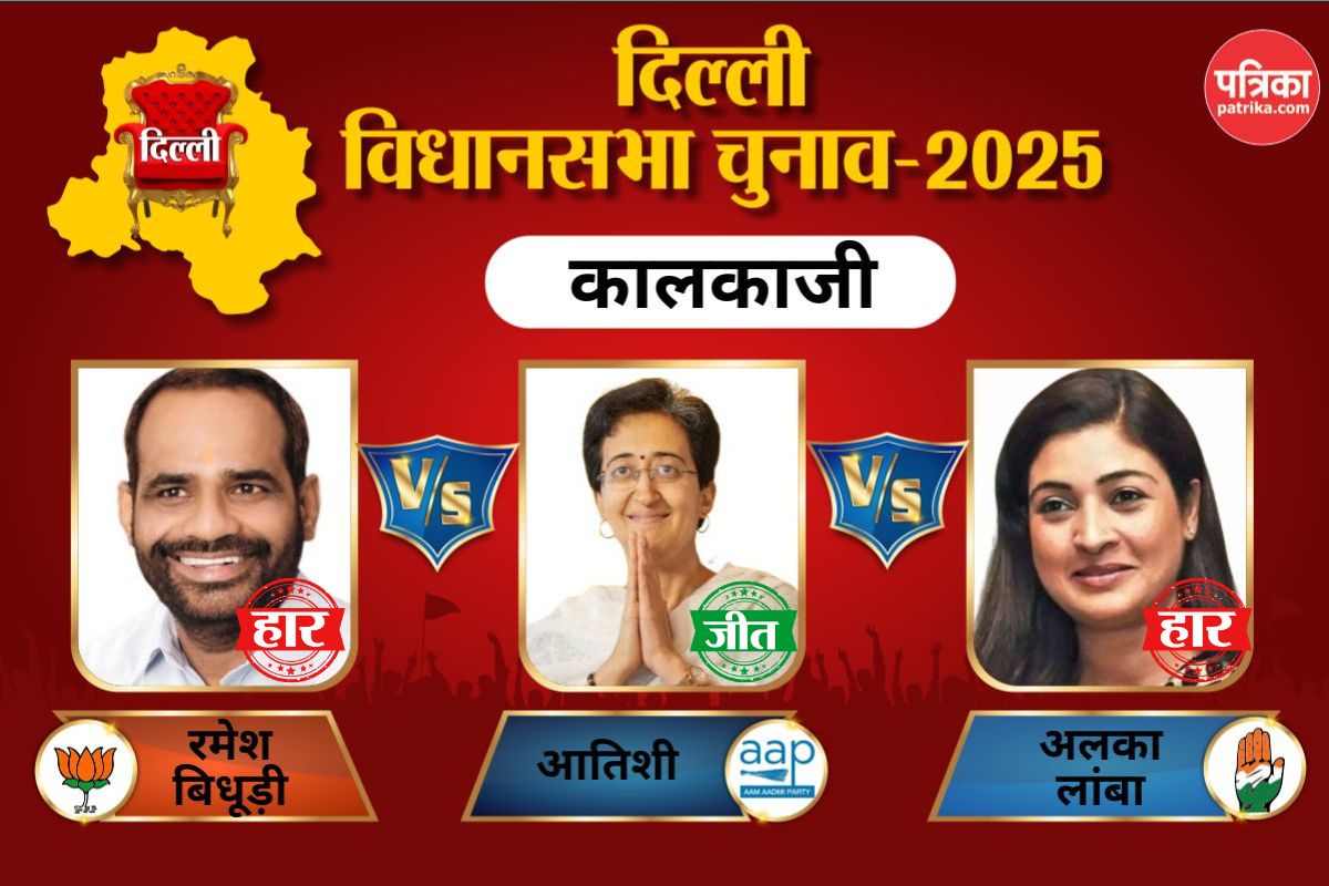 Kalkaji Assembly Election Result 2025: दिल्ली चुनाव 2025 में कालकाजी विधानसभा सीट से दिल्ली की निवर्तमान सीएम आतिशी ने चुनाव जीत लिया है। शुरुआती बढ़त बनाने के बाद भाजपा प्रत्याशी रमेश बिधूड़ी अंतिम समय में पीछे हो गए। आतिशी को 52154 मिले। जबकि रमेश बिधूड़ी को 48633 वोट प्राप्त हुए। वहीं कांग्रेस प्रत्याशी अलका लांबा को 3803 वोट मिले। आतिशी ने 3521 वोटों से रमेश बिधूड़ी को चुनाव में शिकस्त दी है।