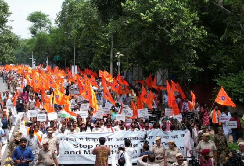 नई दिल्ली: बांग्लादेश में चल रहे आंदोलन के दौरान हिंदू आदि अल्पसंख्यक समुदायों के साथ लगातार हो रही हिंसा के विरोध में राजस्थानी में शुक्रवार को महिलाओं ने मार्च निकाला। नारी शक्ति फोरम ने दिल्ली के मंडी हाउस से जंतर मंतर तक मौन विरोध प्रदर्शन नारी शक्ति मार्च के रूप किया।