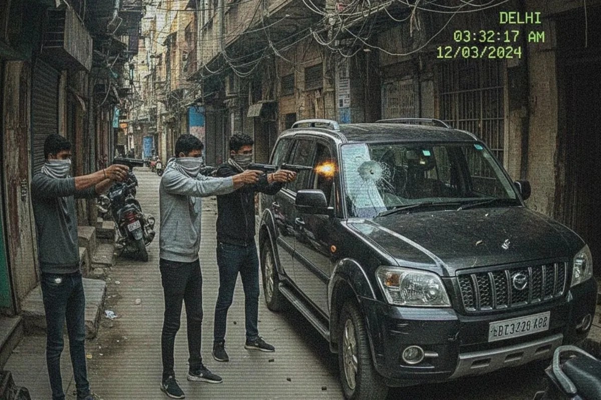 दिल्ली में रियल एस्टेट कारोबारी की SUV कार पर ताबड़तोड़ फायरिंग।