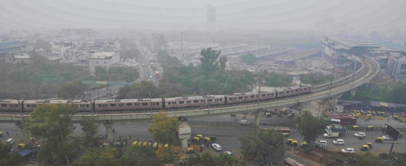 वायु प्रदूषण के दौरान धुंध से घिरी दिल्ली में सोमवार सुबह आनंद विहार क्षेत्र से लिया गया एरियल दृश्य । फोटो- निपुण चान्ना