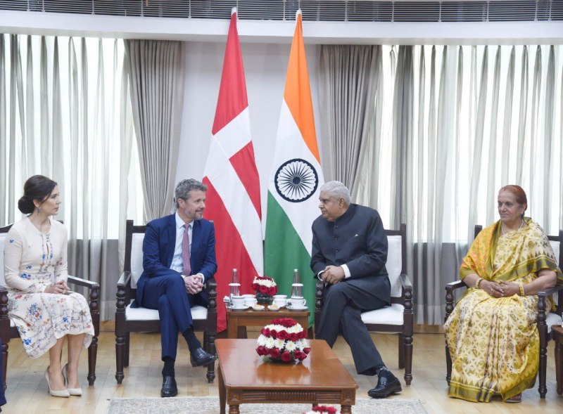 नई दिल्ली। उप राष्ट्रपति जगदीप धनखड़ ने सोमवार को भारत यात्रा पर आए डेनमार्क के क्राउन प्रिंस फ्रेडरिक व उनकी पत्नी प्रिंसेस मेरी से उप राष्ट्रपति भवन में मुलाकात की। इस मौके उपराष्ट्रपति की धर्मपत्नी डॉ. सुदेश धनखड़ भी मौजूद रही।
