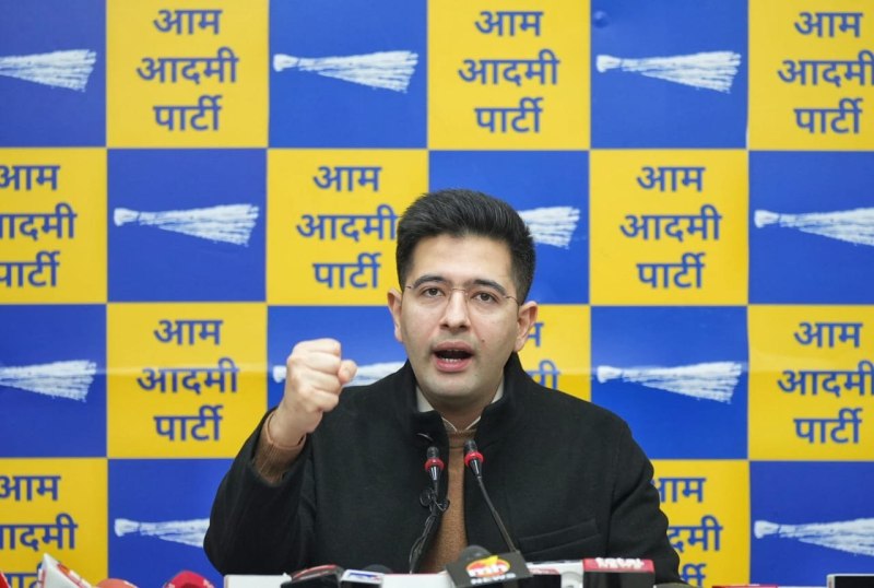 आम आदमी पार्टी मुख्यालय में मंगलवार को संवाददाताओं से बात करते राज्यसभा सदस्य राघव चड्ढा।