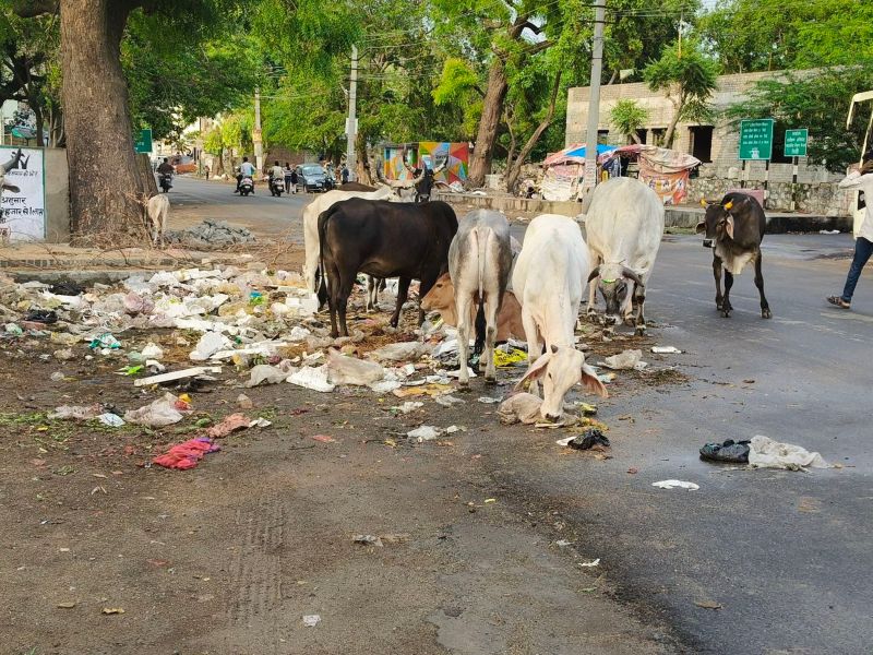 सिरोही. शहर में विचरण करता गोवंश।