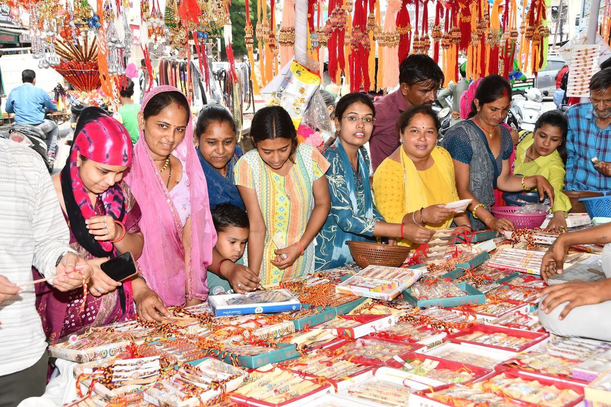 श्रावण मास अब अंतिम पड़ाव पर है और रक्षाबंधन पर्व में एक दिन शेष बचा है। ऐसे में रक्षाबंधन त्योहार को लेकर खासा उल्लास है। बाजार में खरीदारी के लिए बहनों की भीड़ उमड़ रही है। राखियों से लेकर गिफ्ट और नारियल की खरीदारी बढ़ गई है। खासतौर से शहर का आजाद चौक बहनों से गुलजार है। अच्छी ग्राहकी से व्यापारियों के चेहरे भी खिले हैं। उधर, भाई के घर पहुंचने की बहनों को जल्दबाजी है। ऐसे में ट्रेनों और रोडवेज में महिलाओं की रेलमपेल बढ़ गई है। राजस्थान सरकार ने इस बार बहनों को रोडवेज बस में दाे दिन नि:शुल्क यात्रा का तोहफा दिया है। शुक्रवार आधी रात बारह बजे से महिलाएं राजस्थान सीमा में रोडवेज बस में नि:शुल्क सफर कर सकेंगी। इस बार रक्षाबंधन 9 अगस्त को मनाया जाएगा और इस दिन कई दुर्लभ और शुभ योग बन रहे हैं जो न केवल राखी बांधने के लिए बल्कि खरीदारी और निवेश के लिए भी अत्यंत लाभकारी माने जा रहे हैं।