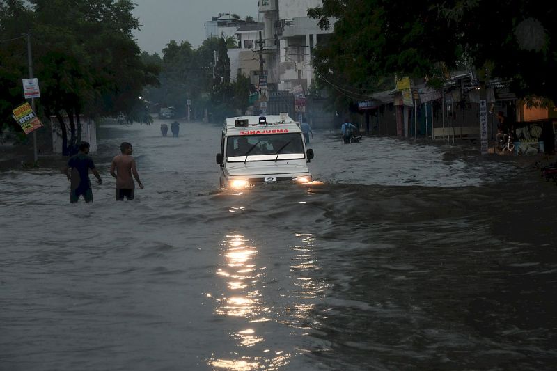 भीलवाड़ा. लम्बे इंतजार के बाद मानसून एक्सप्रेस ने रफ्तार पकड़ी। सावन के सातवें दिन भीलवाड़ा व शाहपुरा जिले में झमाझम हुई। मेघों ने ऐसा राग मल्हार गाया कि उमस छूमंतर हो गई। शाहपुरा जिले के कोटड़ी में 110 व भीलवाड़ा जिले के बिजौलियां में 104 मिमी बारिश हुई। भीलवाड़ा में भी दो घंटे जमकर बदरा बरसे। शहर व कस्बे पानी-पानी हो गए। कई कॉलोनियां जलमग्न हो गई। काली घटाएं छाने के साथ दिन में ही अंधेरा हो गया। वाहन चालकों को भारी दुविधा का सामना करना पड़ा। उधर, ग्रामीण क्षेत्रों में भी मेघ मेहरबान रहे। कोटड़ी में साढ़े चार, बिजौलियां में चार, गंगापुर-सहाड़ा सवा दो और भीलवाड़ा-शाहपुरा में दो इंच से अधिक बारिश दर्ज की गई।