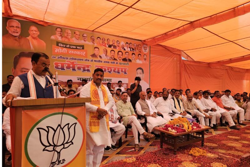 उत्तर प्रदेश के उपमुख्यमंत्री केशव प्रसाद मौर्य ने सोमवार को बरेली के लालफाटक मार्ग स्थित विमल लान ग्राउंड में आयोजित जनसभा को संबोधित किया। डिप्टी सीएम केशव प्रसाद ने कहा कि आज विपक्षी दलों के पास न कोई नेता है और न ही कोई नीति। उनकी नियति भी ठीक नहीं लगती। इन हालात में उत्तर प्रदेश में इन तीनों दलों का कोई खाता तक खुलने वाला नहीं है। सभी 80 सीटों पर भाजपा गठबंधन जीत हासिल करेगा। इसके बाद धमेंद्र कश्यप ने जिलाध्यक्ष आदेश प्रताप सिंह समेत नेताओं के साथ अपना नामांकन कराया। नामांकन के दौरान कैबिनेट मंत्री धर्मपाल सिंह, राज्यसभा सांसद मिथिलेश कुमार, दातागंज विधायक राजीव कुमार सिंह,बिथरी चैनपुर विधायक राघवेंद्र शर्मा,फरीदपुर विधायक प्रोफेसर श्याम बिहारी लाल,सांसद मीडिया प्रभारी राहुल कश्यप,शेखूपुर पूर्व विधायक धर्मेंद्र शाक्य,लोकसभा प्रभारी अशोक भारतीय,लोकसभा संयोजक राणा प्रताप सिंह, बदायूं जिलाध्यक्ष राजीव गुप्ता,वेद प्रकाश यादव,मित्रपाल सिंह,हरेंद्र पटेल,अरविंद चौहान,एके सिंह समेत तमाम लोग उपस्थित रहे।