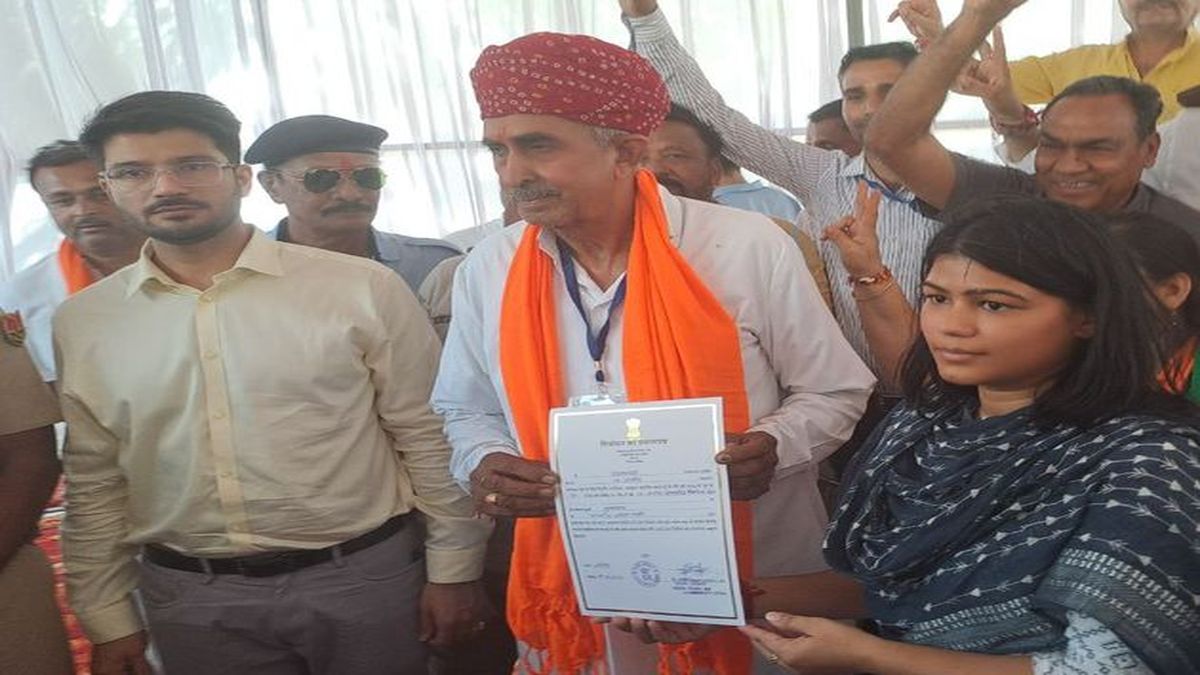 जालोर. जीत के बाद प्रमाण पत्र लेते भाजपा प्रत्याशी लुम्बाराम।