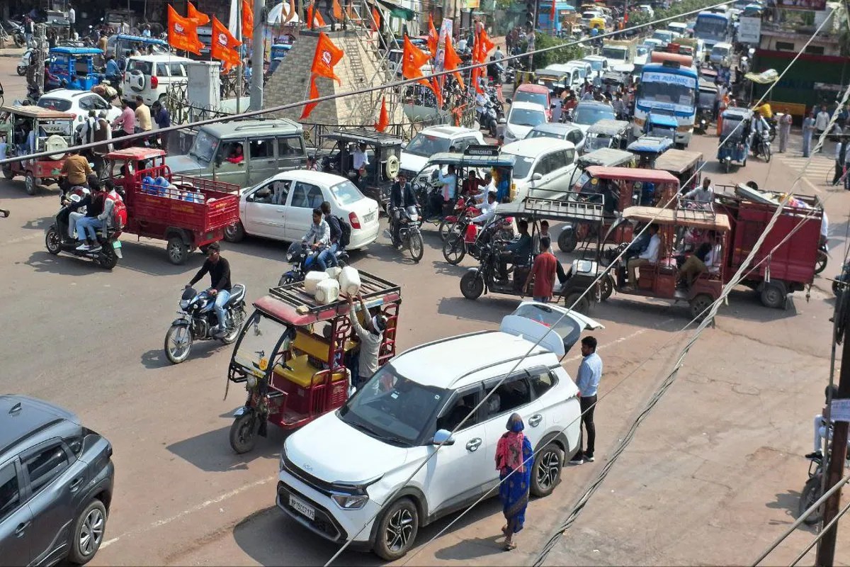 रुट का पालन न होने से छत्रसाल चौक पर ट्रैफिक अव्यवस्था