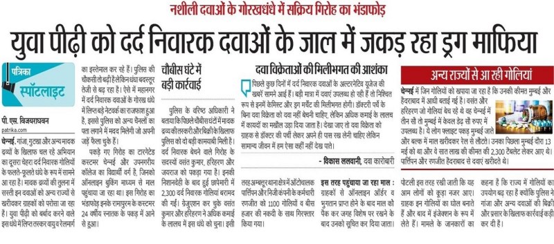 चेन्नई. गांजा, गुटखा और अन्य मादक द्रव्यों के खिलाफ चल रहे अभियान का दूसरा चेहरा दर्द निवारक गोलियों के फलते-फूलते धंधे के रूप में सामने आ रहा है। मादक द्रव्यों की तुलना में सस्ती इन दवाओं को अन्य राज्यों से खरीदकर ग्राहकों को परोसा जा रहा है। युवा पीढ़ी को बर्बाद करने वाले इस धंधे में लिप्त तस्कर वायु व रेलमार्ग का इस्तेमाल कर रहे हैं। पुलिस की चौकसी तो बढ़ी है लेकिन धंधा बदस्तूर तेजी से बढ़ रहा है। ऐसे में महानगर में दर्द निवारक दवाओं के गोरख धंधे में लिप्त बड़े नेटवर्क का राजफाश हुआ है, इससे पुलिस को अन्य चैनलों का पता लगाने में मदद मिलेगी जो अपनी जड़ें फैला चुके हैं।