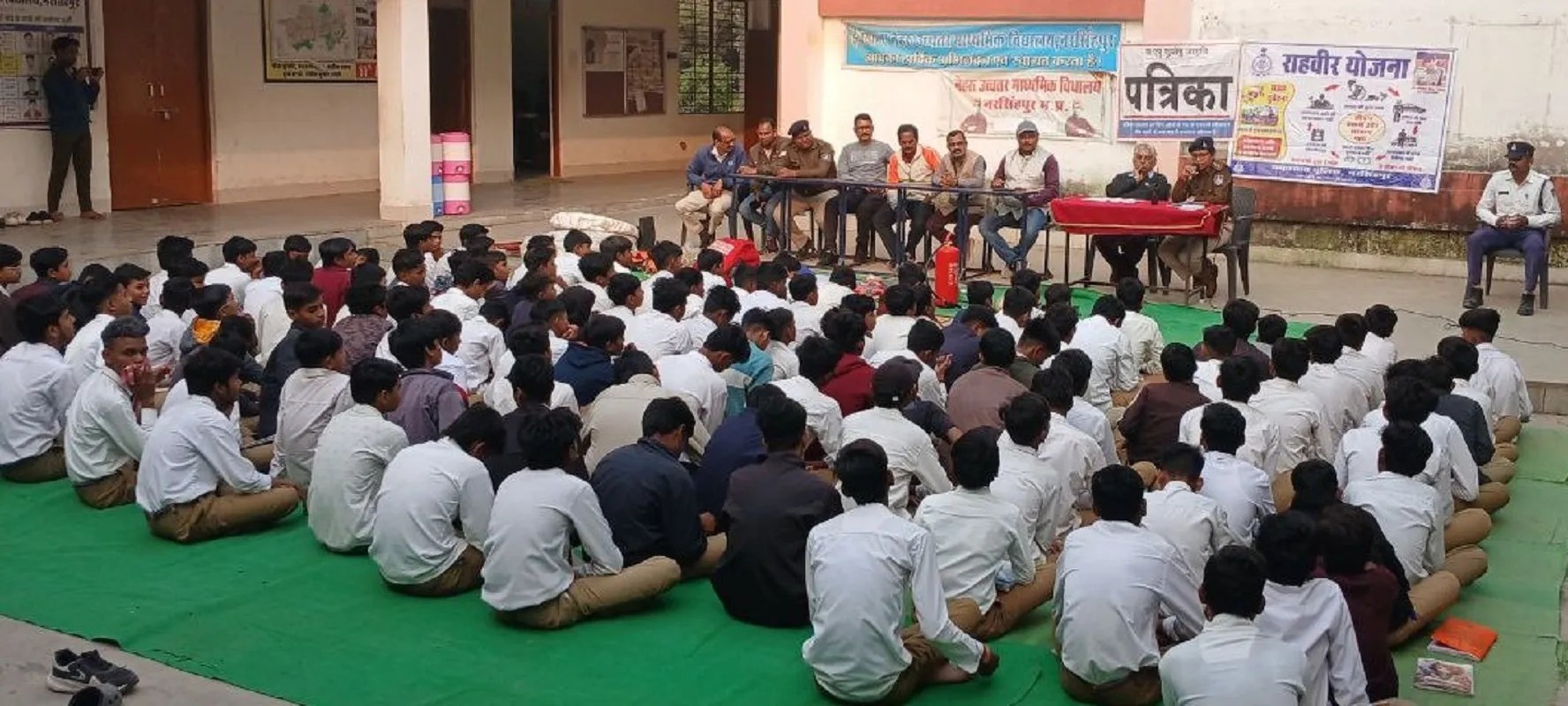 awareness program on road safetyनरसिंहपुर. बुधवार को नगर के शासकीय नेहरू उच्चतर माध्यमिक स्कूल में पत्रिका द्वारा सडक़ सुरक्षा एवं आपदा प्रबंधन पर जागरूकता कार्यक्रम किया गया। जिसमें यातायात थाना प्रभारी ममता तिवारी ने बच्चों को सडक़ सुरक्षा के महत्व से अवगत कराया। विद्यार्थियों को यातायात नियमों, संकेतों और सुरक्षित चलने के उपायों की जानकारी दी। उन्होंने बताया कि सडक़ पर छोटी सी गलती भी बड़ी दुर्घटना का कारण बन सकती है, इसलिए नियमों का पालन बेहद आवश्यक है। वह न सिर्फ स्वयं नियमों का पालन करें बल्कि अपने घर-परिवार और आसपास के लोगों को भी नियमों के पालन के प्रति जागरूक करें। क्योंकि हम सबको मिलकर ही लोगों को सुरक्षित रखने के लिए कत्र्तव्य निभाना है।