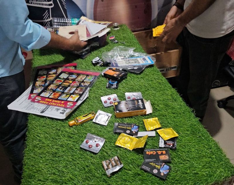 हनुमानगढ़. कैफे के काउंटर व टेबल पर तो फास्ट फूड के विभिन्न आयटम के मैन्यू रखे हुए थे। मगर भीतर छोटे-छोटे दड़बेनुमा कैबिन व कमरों में कंडोम, गर्भ निरोधक गोलियां, सेक्सवद्र्धक दवाई के ढेर मिले। शराब की खाली बोतलें व गिलास, नशीले पदार्थों के सेवन में इस्तेमाल होने वाली पन्नियां वगैरह भी मिली। यह हालात रविवार को तब नजर आए जब नागरिकों की मांग पर जंक्शन थाना पुलिस ने कुछ संदिग्ध कैफे व होटल की जांच की। खास बात यह कि कई जगहों पर संदिग्ध होटलों में आगन्तुक रजिस्टर गड़बड़ मिले। हालांकि समाचार लिखे जाने तक इस संबंध में कोई मामला दर्ज नहीं किया गया था।