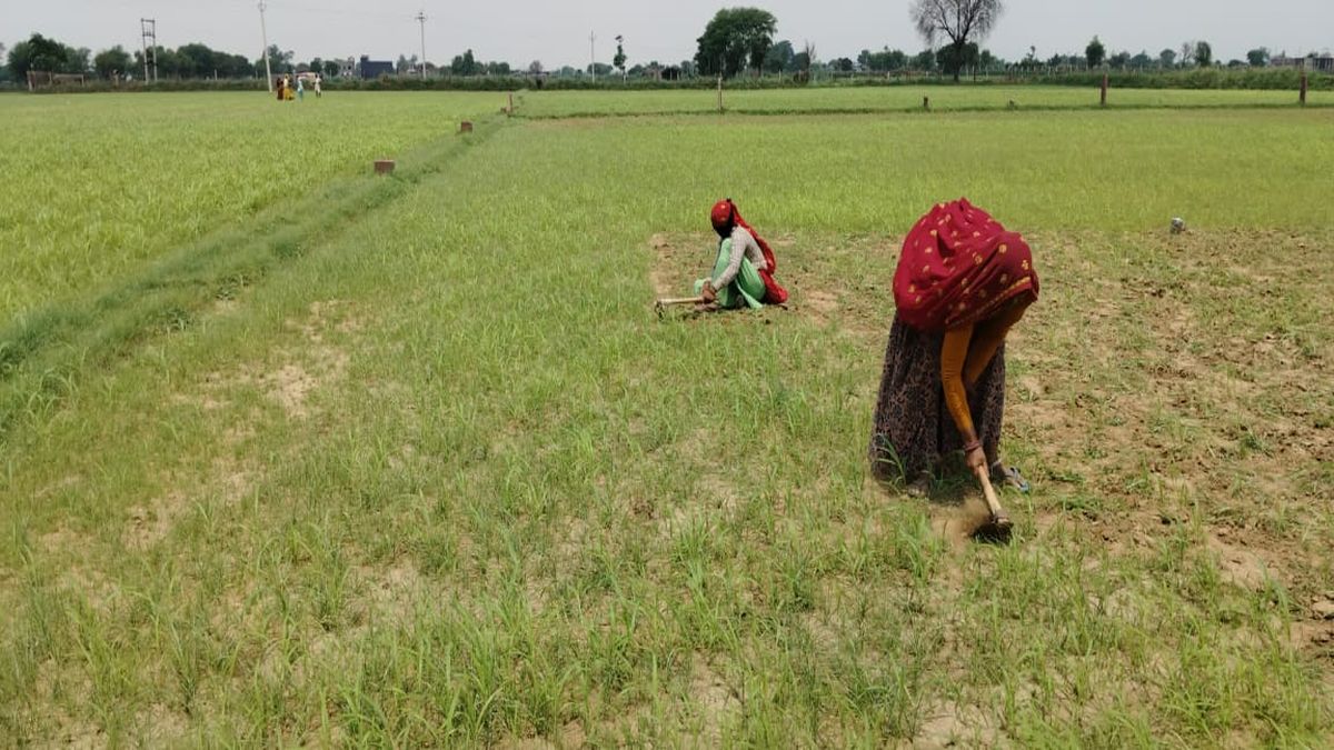 सवाईमाधोपुर. जिले के सुनारी गांव में बाजरे की निराई-गुड़ाई करती किसान महिलाएं।