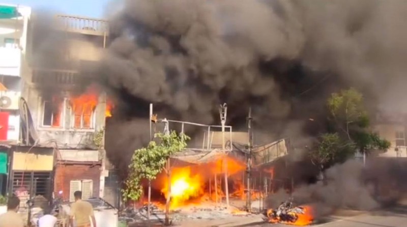 हवा के साथ आग ने भीषण रूप धारण कर लिया। भीषण आग से 5 दुकानों व 10 मकानों में काफी नुकसान हुआ।